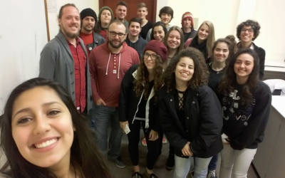 Os alunos ficaram encantados com os trabalhos desenvolvidos por Maurício em áreas diversificadas, como ilustração, pintura, estamparia, design gráfico e publicidade e, de quebra, puderam entender os processos criativos e de produção utilizados por ele no momento da criação. O professor Robert destacou a oportunidade dos estudantes em ter contato com um profissional da área. “Foi importante essa troca ideias e poder esclarecer dúvidas, desenvolver novas dúvidas, enxergar perspectivas e perceber na prática conteúdos abordados em sala de aula”, afirmou. O designer Maurício, que também fez curso técnico na área e que atualmente é estudante de Design na Feevale, evidenciou a importância de desenvolver os conhecimentos e habilidades durante a formação e de estar em constante atualização para se aprimorar.