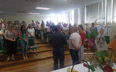 Ivoti – A reunião de encerramento para os professores da Educação Básica, realizada na quinta-feira, dia 21 de dezembro, contou com um momento especial, a professora Renati Korndörfer, se despediu após 39 anos trabalhando como professora da Educação Infantil.
