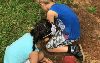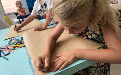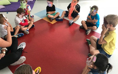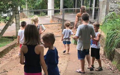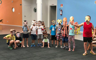 Além disso, estão ocorrendo diferentes atividades relacionadas ao livro “Viviana, a rainha do pijama”, de Steve Webb. A partir da contação da história, as crianças realizaram uma exploração pela escola com o intuito de recolher materiais da natureza para a criação dos seus próprios animais. Elas criaram suas próprias máscaras e com elas brincaram de “mamãe, quantos passos posso dar?”. Outra atividade relacionada a história foi a confecção de cartas para serem enviadas aos seus animais preferidos.