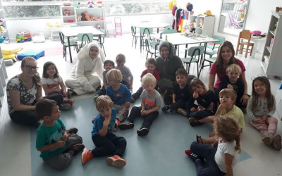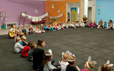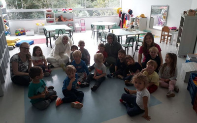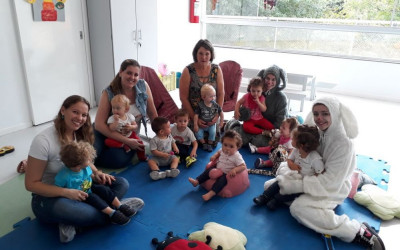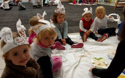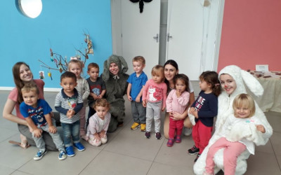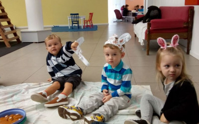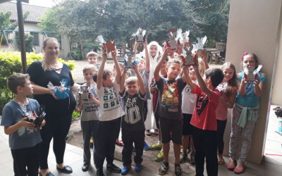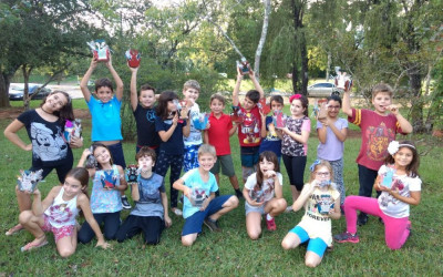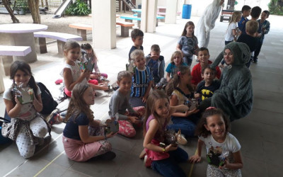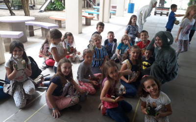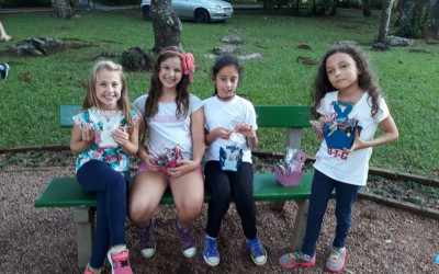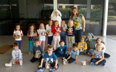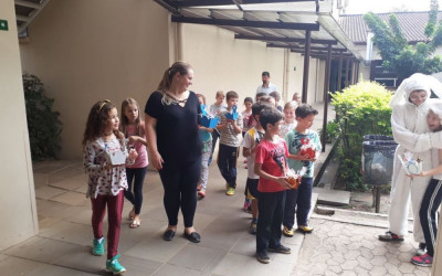 Os ninhos foram enfeitados em sala de aula pelos próprios alunos e cada um foi identificado com o nome do aluno. Na saída da meditação estudantes do Curso Normal, vestidos de coelhos ajudaram na busca pelos ninhos, deixando o dia ainda mais especial
