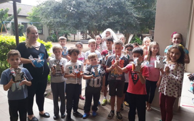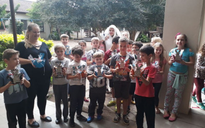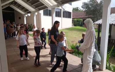 Ivoti – A celebração da Páscoa não estaria completa sem uma caça ao ninho e uma visita do coelho. Os alunos da Educação Infantil até o 5º ano do Ensino Fundamental participaram dessa atividade na quinta-feira, após as meditações com o pastor escolar Edson Reginaldo.