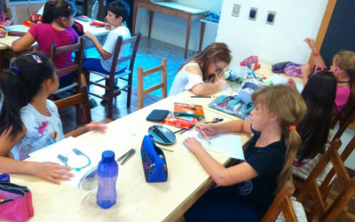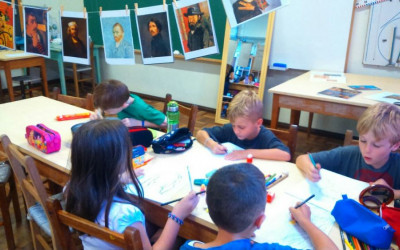 Depois desse contato inicial com as obras, a tarde de quarta-feira, 29, foi de criação das próprias obras. Utilizando grafite, lápis de cor, giz de cera e outros materiais gráficos a turma foi estimulada a desenhar seu próprio retrato. Para ajudar nessa missão, o professor incentivou os alunos a trazer espelhos de casa, assim, vendo o próprio reflexo, eles reproduziram no papel seus rostos e pensaram sobre a forma como eles se vêem.