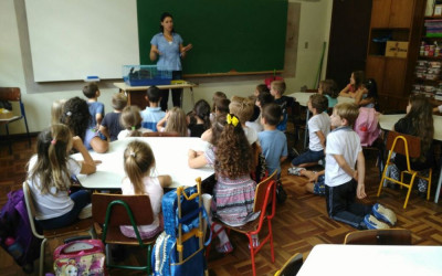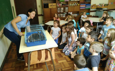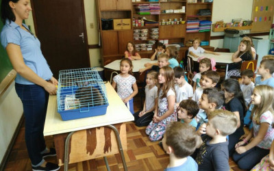 Ivoti – As turmas do 1° ao 5° ano receberam no dia 5 de abril a veterinária Natália Gomes Cardoso. A profissional trouxe junto com ela a Lola, uma coelha, e falou com os alunos sobre seus hábitos, alimentação e reprodução. A atividade é alusiva a semana da Páscoa e os estudantes adoraram participar deste momento.