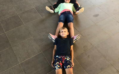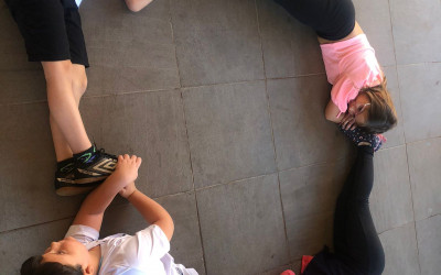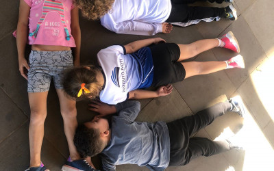 As crianças conheceram a música “A, E, I, O ,U”, do Grupo Triii, onde o grupo musical menciona que as vogais podem estar no início, meio e fim das palavras, além de criar movimentos com o corpo para identificar o seu traçado. Inspirados na música, a turma foi desafiada a criar os movimentos das consoantes, já que na música estão apenas as vogais. Eles também organizaram o mural do Prédio F com a exposição das fotos para que as outras turmas possam conhecer e experimentar os movimentos.