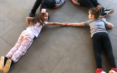 Crianças do 1º ano do Instituto Ivoti usam o corpo para identificar o traçado das letras