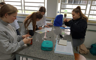 O grupo também realizou uma atividade prática sobre metais e ametais. Nesse dia eles puderam exercitar os conhecimentos sobre as classificações periódicas dos elementos, observar características das substâncias disponíveis, pesquisar e identificar os principais elementos presentes em uma amostra de material, verificar se qualquer metal é magnético e elaborar hipóteses a partir de observações práticas.
