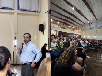 Na sequência, o diretor, Prof. Me. Jorge Augusto Feldens, apresentou comunicados institucionais relevantes para o semestre. Entre eles, a realização da Semana do Bem-Estar e Pausa Criativa, período em que os acadêmicos não terão atividades presenciais, favorecendo o descanso e a organização pessoal ao longo do semestre. Também foi celebrada a conquista do conceito máximo do MEC para os cursos de Pedagogia e Letras Português e Alemão, além da futura validação do novo curso de Educação Física.