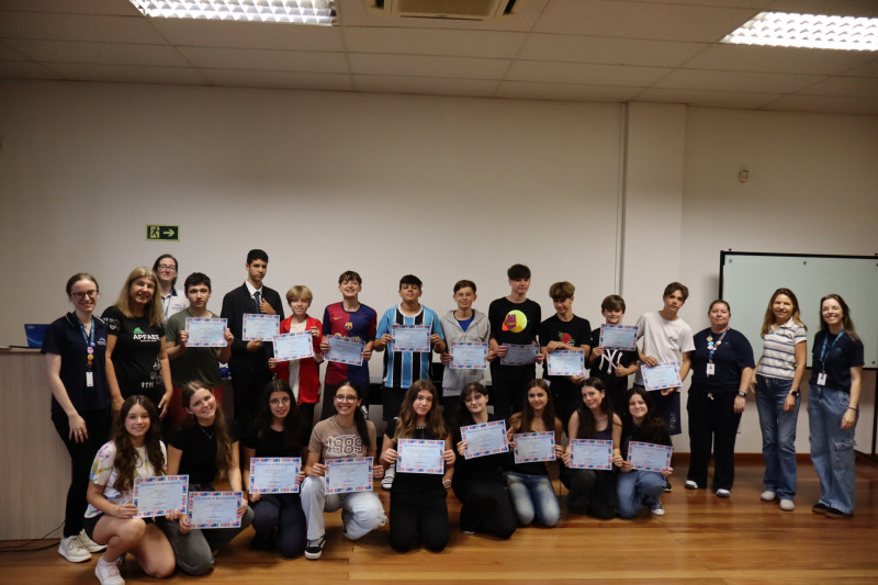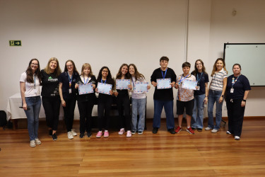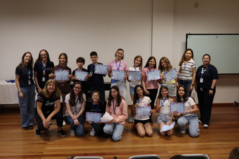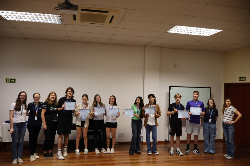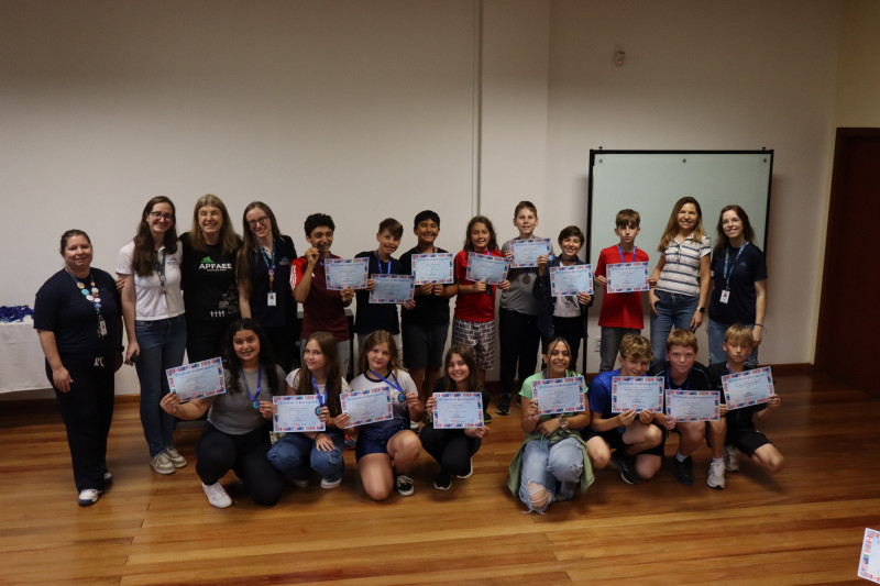 No dia 09 de novembro as professoras de Língua Inglesa e os estudantes dos Anos Finais se reuniram na escola para um momento especial de valorização e reconhecimento dos alunos que participaram da primeira edição da Olimpíada de Inglês The Big Challenge realizada no Instituto Ivoti nos dias 02 e 04 de setembro. A atividade marcou uma iniciativa inédita, pensada para incentivar o protagonismo dos estudantes e ampliar seu contato com a língua.