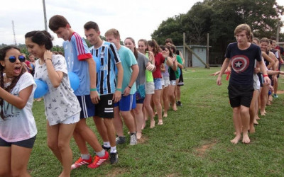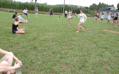 Os professores Lucas Adam e Camila Costa organizaram atividades recreativas e animaram todos com as brincadeiras. Após, o espaço foi utilizado para curtir um momento livre com os amigos. A janta foi servida no local e todos retornaram juntos para as moradias