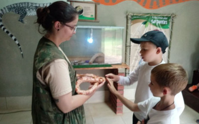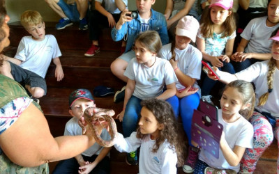 As turmas tiveram a oportunidade de ouvir explicações específicas sobre os répteis, conhecer e encostar em uma cobra, mas com a orientação de nunca fazer isso na natureza, pois a cobra conhecida neste momento está acostumada a este tipo de atividade. Também puderam ver anfíbios, peixes, os animais da fazendinha e até entrando em um viveiro, ficando junto de algumas espécies.