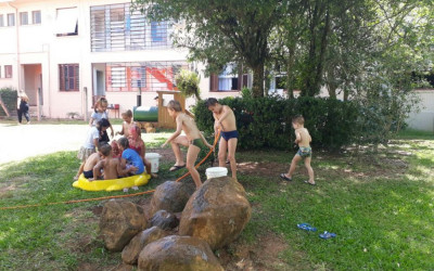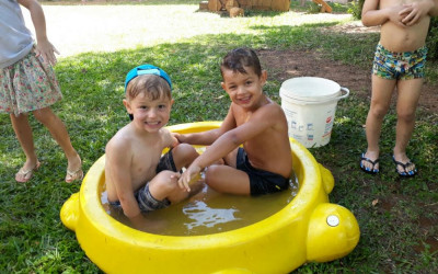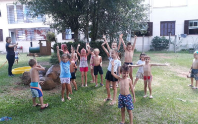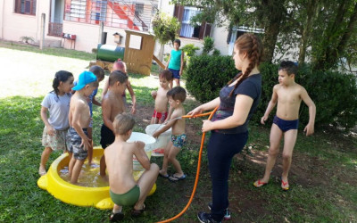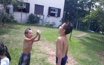 Ivoti – Calor, férias, escola e banho de mangueira! Assim foi a quarta-feira dos alunos do turno integral do Instituto Ivoti. Aproveitando o dia de sol e calor as professoras organizaram uma tarde divertida para os alunos. Eles curtiram muito o momento que foi repleto de risadas e diversão com os colegas.