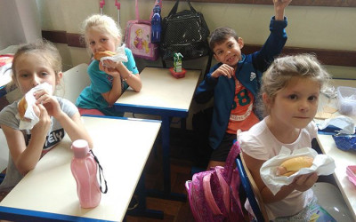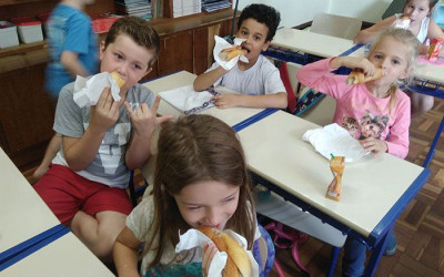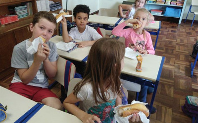 A turma do 1º ano do Currículo Bilíngue, da professora Heloísa Wilke Jardim, participou de muitos desses momentos. Eles degustaram Bratwurst, uma comida típica da Alemanha, participaram da assembleia temática onde aprenderam quais são os países envolvidos na Semana e apresentaram a temática que estudaram em sala de aula.