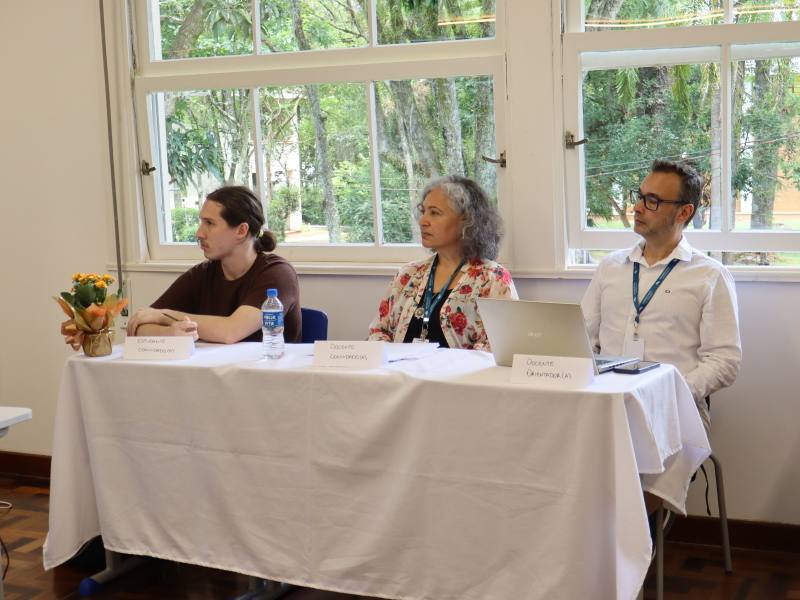 Ao longo do encontro, bancas simultâneas acolheram a participação de acadêmicos, docentes orientadores, convidados e estudantes indicados para contribuir com as discussões. Cada participante apresentou sua investigação, compartilhando trajetórias de estudo, resultados e reflexões construídas ao longo do processo de pesquisa.