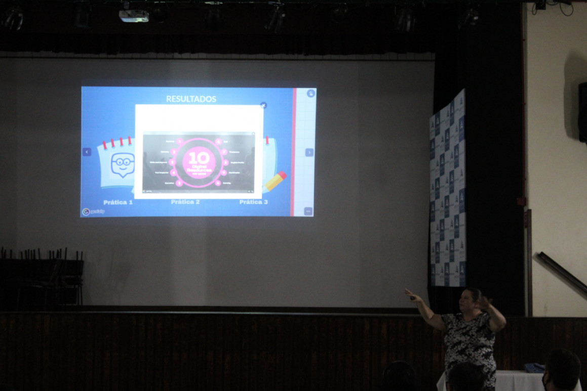 Ângela tem como tema principal de sua pesquisa Experiencing Pedagogical Practices With Digital Resources In The Teacher Training Of English Teachers. Após a apresentação foi realizada a escolha de acadêmicos em diferentes cargos de conselhos do Ensino Superior.