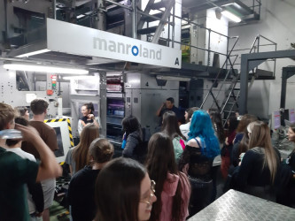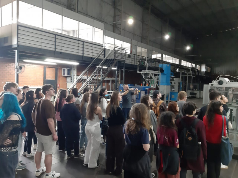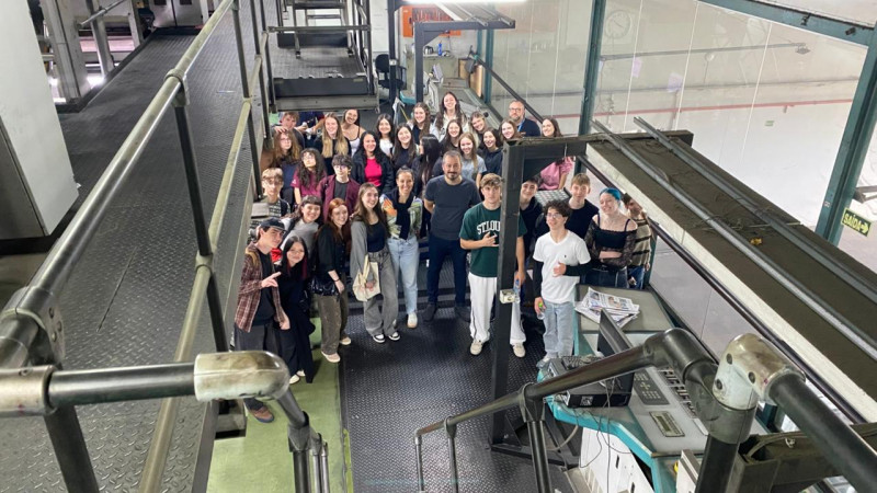 Durante a visita, os alunos conheceram os setores de redação, diagramação e arte, observando de perto como acontecem os processos que dão forma às publicações do grupo. Além disso, tiveram a oportunidade de visitar o parque gráfico, onde puderam acompanhar as etapas de impressão, conhecer as máquinas, materiais e o sistema de produção utilizado.