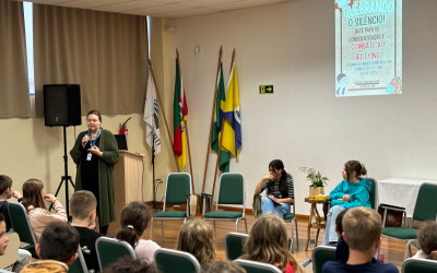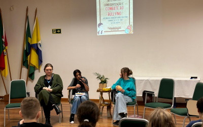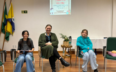 Dando seguimento a proposta, intitulada: Construindo uma cultura de respeito: conversando sobre o bullying, as alunas do 5 ano B, Ísis Alana Lima e Nathália Jappe, conduziram a assembleia do dia 30 de agosto para os alunos do 4º e 5º ano da tarde. Essa ação, que foi realizada com acompanhamento da psicóloga Educacional Renata Hugentobler, corrobora com o tema de pesquisa das alunas para a Mostra Científica de 2024 e possibilita a sensibilização sobre este assunto.