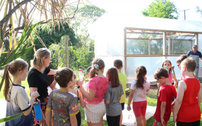 Na última semana, as turmas foram surpreendidas com diversas novidades trazidas pela professora Janaíne Melchiors. A primeira delas, foi um passeio até a nova estufa que está sendo finalizada. Construída no mesmo local da antiga estufa, o novo espaço poderá receber turmas para aulas na parte interna. “Esse local fará parte das aulas das crianças, por isso, considero importante que eles acompanhem esse processo”, destacou a professora Janaíne.