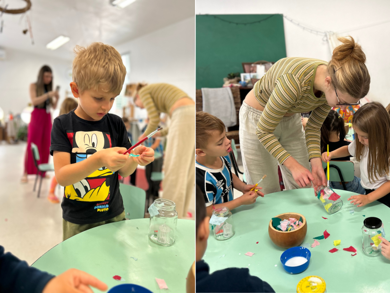 Para tornar esse aprendizado ainda mais especial, o grupo participou da confecção de suas próprias lanternas. A proposta foi organizada pela Frau Petry e contou com o apoio da voluntária alemã Sophia Thomas, que está realizando um semestre de vivência no Instituto Ivoti. Cada criança personalizou sua lanterna com cuidado e criatividade, dando vida a produções únicas que serão utilizadas na Caminhada das Lanternas da Educação Infantil, marcada para o dia 5 de dezembro.