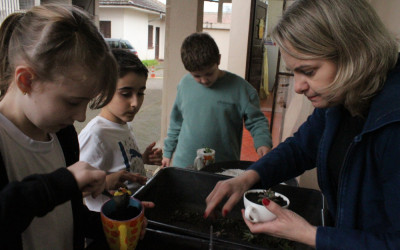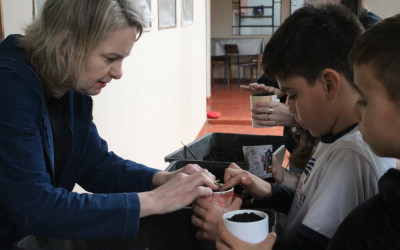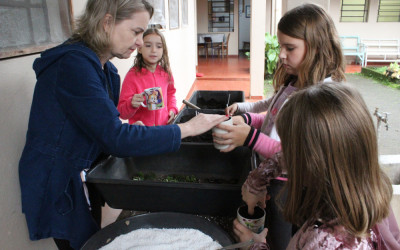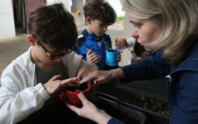 Crianças do Instituto Ivoti criam mini jardins no Herbário para levar para a casa