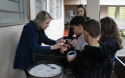 Durante a aula, a professora Janaine explicou sobre o processo de criação dos jardins e orientou as turmas sobre a ordem de colocação dos materiais na xícara. Os estudantes preencheram as xícaras com terra, colocaram as mudas de suculentas (produzidas na estufa do Programa) e depois finalizaram com pedrinhas brancas, que além de evitarem os respingos de terra manterão a umidade do solo. Elas também foram orientadas sobre o cuidado com as suculentas: quantas vezes regar, quantidade de luz necessária e o que observar no crescimento das plantinhas.