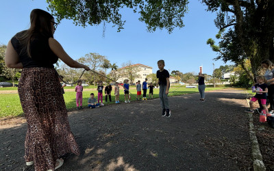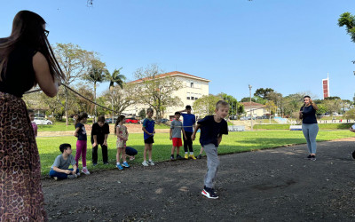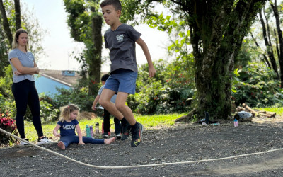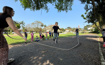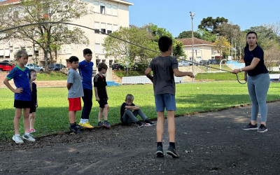 As crianças da Educação Infantil e dos Anos Iniciais que participam do Turno Integral passaram a manhã na pista atlética do Instituto Ivoti em um Campeonato de Pular Corda. A atividade promovida pelas monitoras de ensino Larissa Moraes, Stéfani Barcelos, Nicoly Amaral e Eduarda Lippert encantou os estudantes.