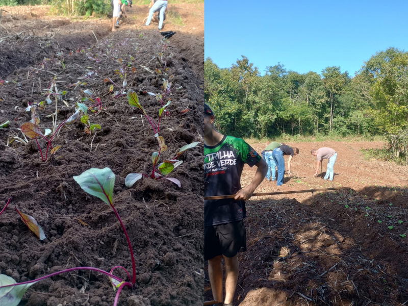 Em uma das atividades, realizada no espaço de cultivo da escola, os alunos desenvolveram o plantio de hortaliças como parte das disciplinas de Olericultura e Introdução à Agropecuária. Durante a prática, foram realizadas a identificação de espécies olerícolas, o preparo do solo, o plantio com definição de espaçamento adequado, o transplante de mudas e a semeadura direta. Após o crescimento, as hortaliças serão destinadas à feira escolar, que também possui caráter pedagógico ao envolver os estudantes na comercialização da produção.