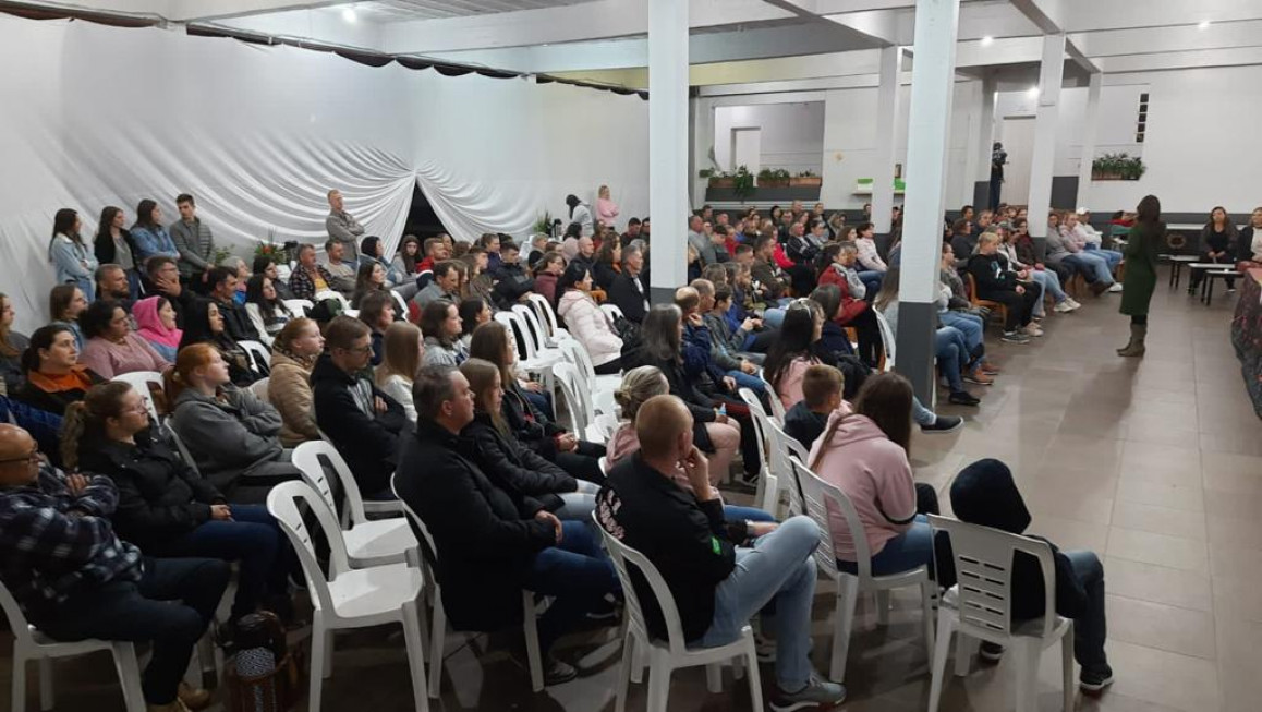 Na quarta-feira, 10, a professora Dra. Raquel Dilly Konrath, do Ensino Superior do Instituto Ivoti, participou como convidada de um encontro de famílias no Colégio Estadual Cônego Scherer, em Santa Maria do Herval.