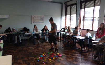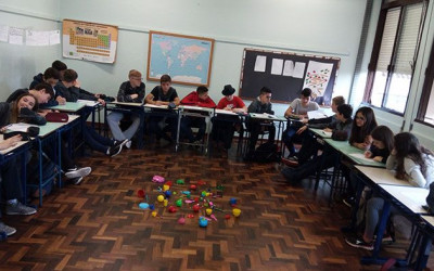 Ivoti – Na segunda-feira, 11, as turmas de 9º anos iniciaram seus estudos sobre a organização da tabela periódica durante a disciplina de ciências da professora Deise Graciela Rott. O conteúdo foi abordado através de uma atividade lúdica, onde os estudantes observaram objetos de cores, formas, texturas e tamanhos variados e tiveram que organizá-los em grupos com características semelhantes. Em seguida foi realizada uma discussão sobre como esta atividade poderia estar relacionada com a maneira como os elementos químicos da tabela periódica estão organizados.