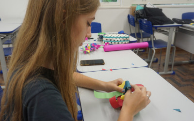 As professoras do NAI Carla Kuhn, Daniela Bühler, Janaina Klein, Débora Bender, Indiara Bohn e Ulrike Weiher organizaram as atividades com as turmas. Na turma do NAI 21 e 22, os estudantes trouxeram rolinhos de papelão e criaram um Calendário de Elfchen, que são poemas de 11 palavras e cinco versos.