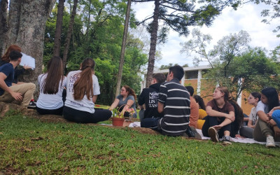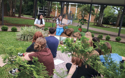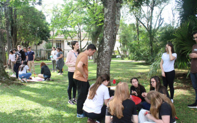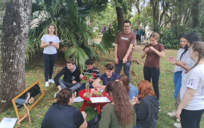 Os estudantes do 3º ano do Itinerário Formativo em Formação Docente organizaram uma manhã de vivências e exploração de contextos. Após vivenciarem algumas possibilidades e organização de espaços investigativos nas aulas da professora Patrícia Müller, eles foram incentivados a abordar o contexto de uma das temáticas para ser explorada pelos colegas.