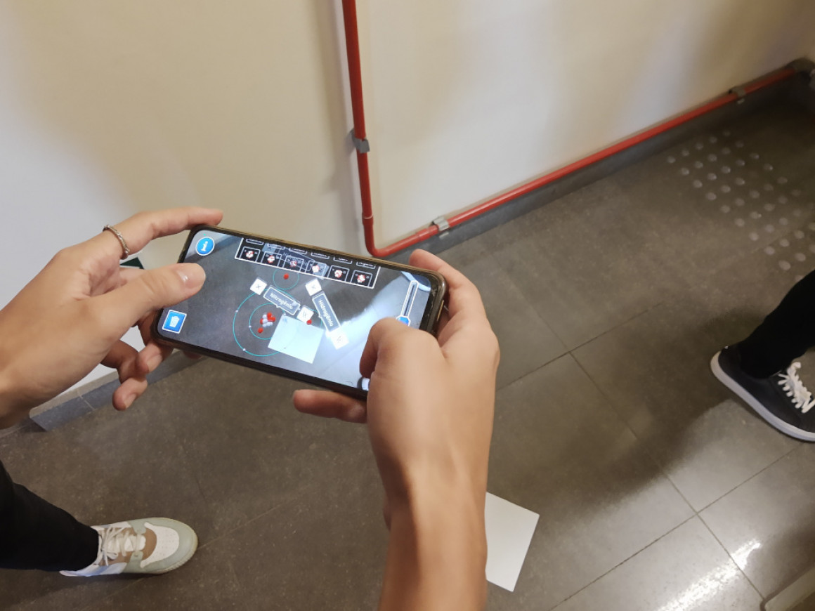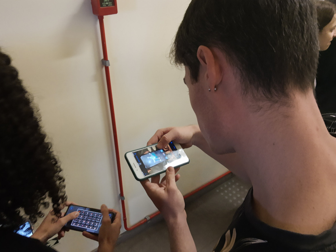 Durante as aulas de Ciências da Natureza com a professora Deise Rott, os estudantes do 3º ano do Curso Normal em Nível Médio (N3) tiveram um momento para testar um aplicativo digital, que possibilita a visualização dos átomos em realidade aumentada.