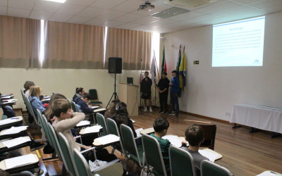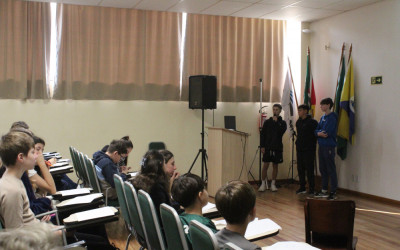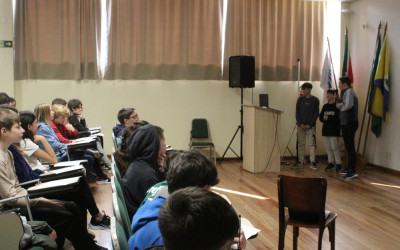 Os estudantes do 6º ao 9º ano do Ensino Fundamental apresentaram seus trabalhos para uma banca avaliadora nas últimas semanas. Dos cerca de 80 trabalhos apresentados, seis são aprovados, por turma, para participar da Mostra de Iniciação Científica do Ensino Fundamental. Este ano, as turmas do Currículo Bilíngue Português e Alemão também terão seus trabalhos avaliados, assim nas turmas de 6º e 7º ano, serão escolhidos quatro trabalhos do currículo regular e dois do bilíngue.