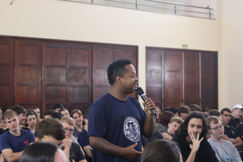 No dia 12 de novembro, as turmas do Itinerário Formativo de Ciências Humanas (IFCH) e das segundas séries do Ensino Médio do Instituto Ivoti participaram de uma conversa especial com o convidado Eduardo Tamborero, que esteve na escola para dialogar sobre a importância da Consciência Negra e a presença do racismo estrutural na sociedade brasileira.