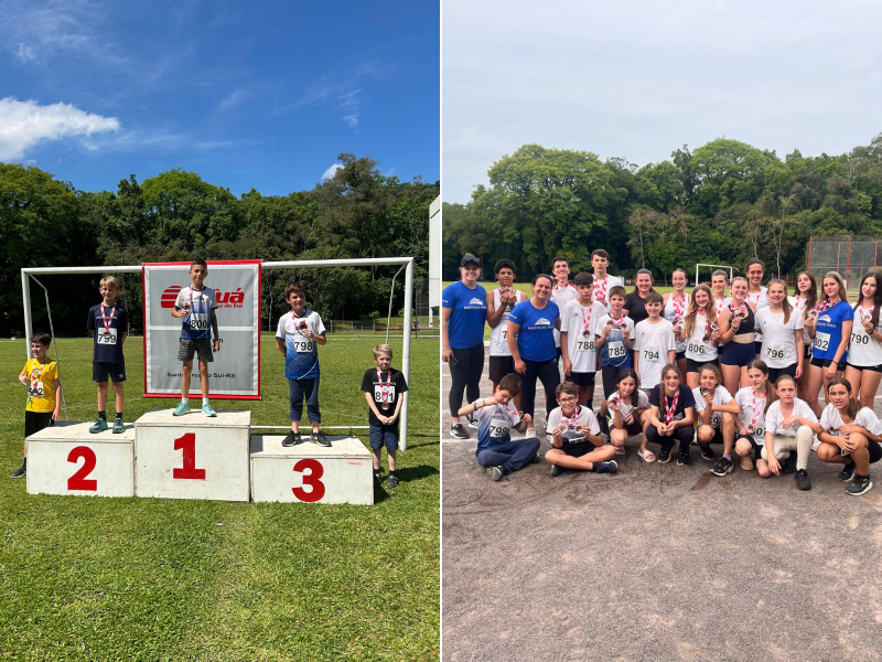 Os alunos, acompanhados pelas professoras Édina e Sandra, demonstraram grande dedicação e espírito esportivo, conquistando vários pódios em diferentes modalidades e categorias. Entre os destaques estão Murilo Pauletti Karling, com dois primeiros lugares nas provas de 50m e 400m rasos (Sub10), e Isabela Gollmann, campeã no lançamento de disco (Sub16). Outros alunos também alcançaram excelentes colocações em provas de corrida, salto, arremesso e revezamento, representando o Instituto Ivoti com entusiasmo e comprometimento.