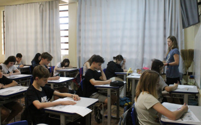 As avaliações foram organizadas pelas áreas de conhecimento: Língua Portuguesa e Redação, Ciências da Natureza, Matemática e Ciências Humanas. Os resultados serão divulgados para os alunos e familiares posteriormente.