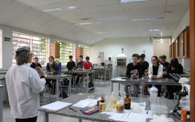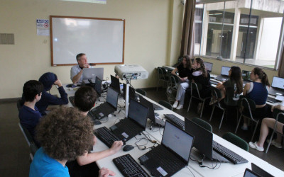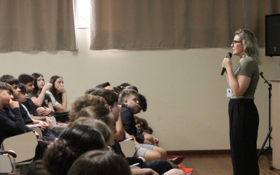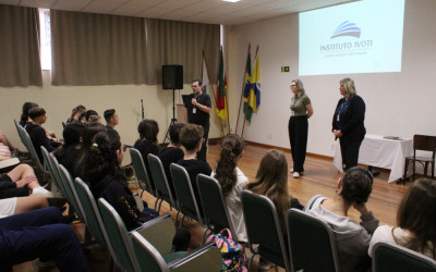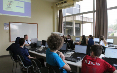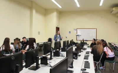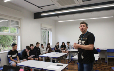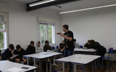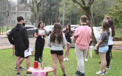 Na sequência, os estudantes foram divididos em cinco grupos e direcionados para um período de aula de cada Itinerário Formativo disponível no Instituto Ivoti. São eles: Comunicação e Humanidades, Raciocínio Humano e Sustentabilidade, Formação Docente, Técnico em Informática e Técnico em Design Gráfico.