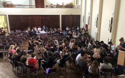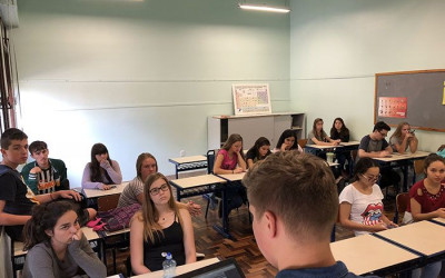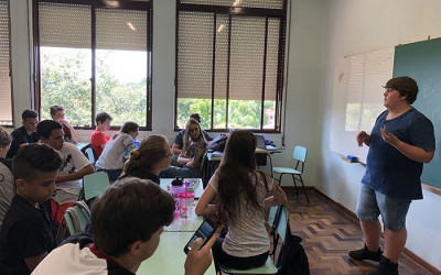 Ivoti – Na sexta-feira, 23, os alunos do Ensino Médio e do Curso Normal participaram de uma preparação para a simulação de uma Conferência da ONU, o Model United Nations (MUN). Organizada pelos professores Jéssica Finger e Lucas Breunig a atividade é realizada em inglês e será oficialmente executada na quinta-feira, 1º de março.