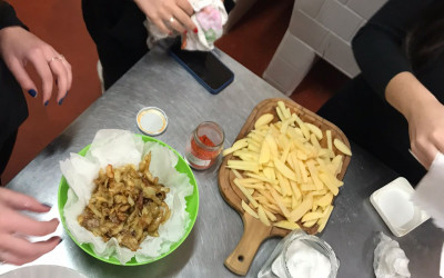 A turma de Química Ambiental realizou uma atividade de aproveitamento integral dos alimentos. Eles utilizaram batata, laranja e chocolate e fizeram diferentes receitas que depois foram degustadas por todos os estudantes.