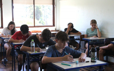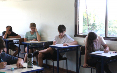 Os estudantes também estão realizando as provas orais ao longo dos próximos dias. Essa avaliação é realizada internamente e aplicada pelas professoras das turmas. A prova avalia as habilidades dos estudantes em ler, escrever, ouvir e falar em Língua Alemã.