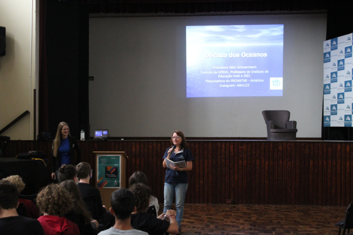 Ivoti - As turmas de 8ºs e 9ºs anos participaram, na quarta-feira, 13, de uma palestra sobre Décadas dos Oceanos. A atividade foi organizada pela professora Jorgia Seibel que convidou a professora AiIim Schwambach para falar com os estudantes.
