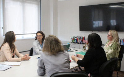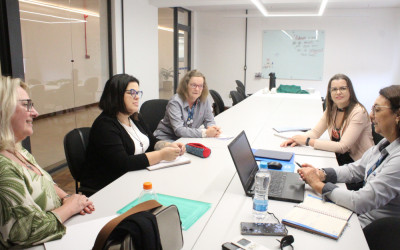 A equipe foi recebida pela assessora de legislação e projetos, professora Dirce Schöninger, e pela coordenadora da Extensão e Formação Continuada e coordenadora Institucional do PIBID, professora Delci Klein.