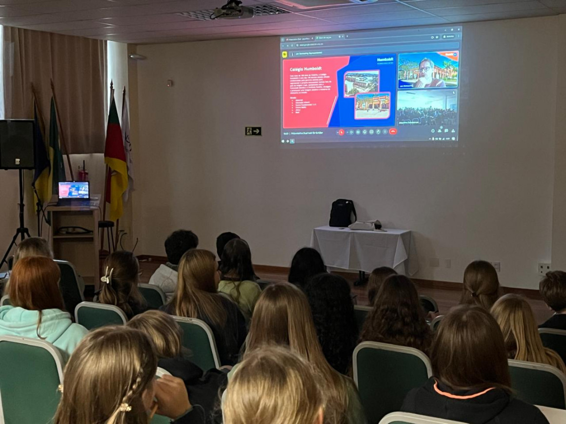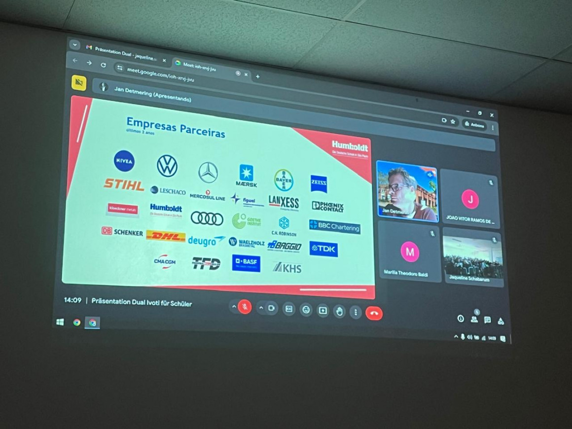 Estudantes do Núcleo de Aprendizagem de Idiomas (NAI)/Instituto Ivoti assistiram a uma palestra online sobre a Formação Profissional Dual oferecida pelo Colégio Humboldt, de São Paulo, na tarde de segunda-feira, 24. Durante a conversa esteve presente o diretor da Formação Dual no Colégio Humboldt, Jan Detmering.