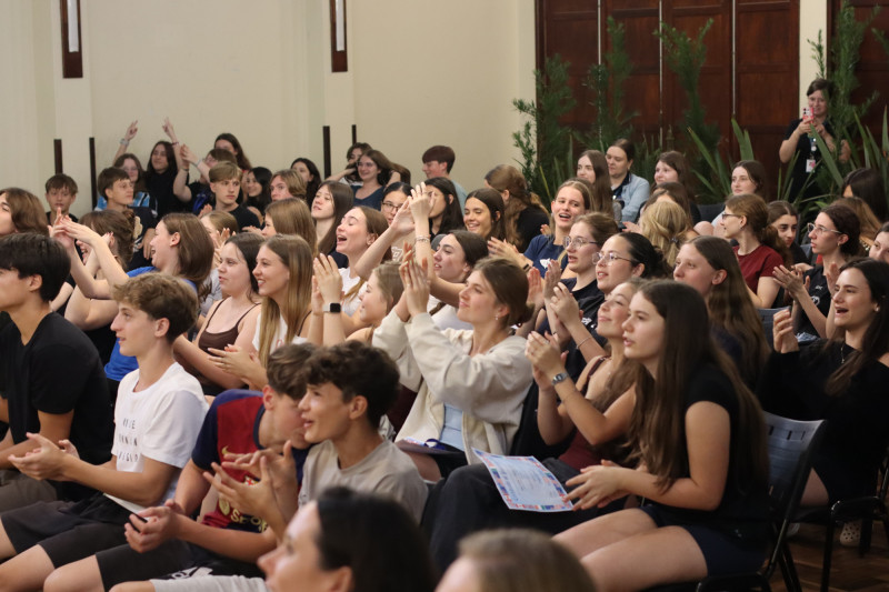 Na terça-feira, 09 de dezembro, os estudantes dos Anos Finais participaram do II Fazendo História no Palco, uma manhã especialmente preparada para valorizar e celebrar as diversas habilidades dos alunos. O encontro ocorreu no Instituto Ivoti e reuniu apresentações que envolveram canto, violino, bateria, poemas, danças, esportes e outras expressões artísticas e culturais.