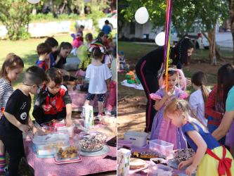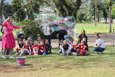 Na Educação Infantil, cada dia foi repleto de novas experiências e muita diversão. Nos dias 8, 9 e 10, as crianças participaram de diferentes atividades, como o Dia da Pipa de Mão, quando puderam brincar com as pipas confeccionadas junto às famílias; o momento das bolhas de sabão gigantes, que encantou a todos e despertou a curiosidade; e o Dia da Fantasia e do Cabelo Maluco, que transformou os corredores da escola em um desfile de cores e criatividade. Para encerrar as comemorações, as turmas compartilharam um animado piquenique coletivo.