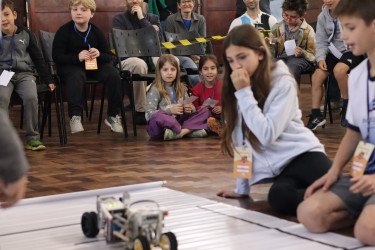 Já os alunos do 3º ao 5º ano participaram do Combate Robótico, no qual, em grupos, construíram carros com o Kit Lego Ev3. Na olimpíada, as equipes disputaram em batalhas todos contra todos, em um clima de cooperação e entusiasmo. Os vencedores foram: