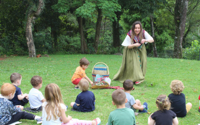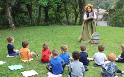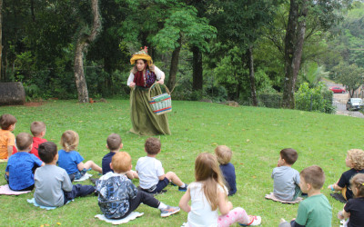 O Instituto Ivoti está recebendo diferentes atividades relacionadas à 41ª Feira do Livro de Ivoti: “Passaporte para novos horizontes”. Na terça-feira, 24, as crianças da Educação Infantil ouviram atentamente a contação da história Voos, escrito por Alessandra Roscoe e ilustrado por Gisele Barcellos. A contação foi realizada por Lolita, no projeto Borboleta, ação que está sendo desenvolvida nas escolas durante a feira.