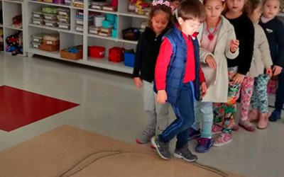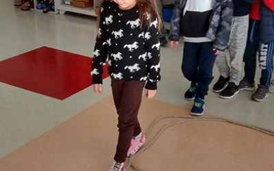 Os alunos também estão aprendendo o traçado das letras com uma atividade diferente, uma corda é colocada no chão no formato da letra e os alunos caminhando sobre ela realizando o trajeto correto da escrita de cada letra. “Estes momentos estão sendo muito significativos para todos e muitas são as aprendizagens e descobertas realizadas. Agradecemos a participação dos pais neste trabalho, pois é muito importante para o desenvolvimento dos alunos”, finalizou Béverle.