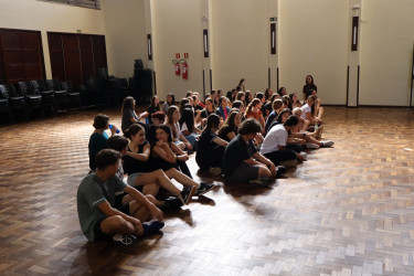 Durante o encontro, os participantes vivenciaram dinâmicas e momentos de diálogo que proporcionaram um espaço de convivência, partilha de experiências e troca entre os diferentes anos do curso. A proposta também convidou os estudantes a refletirem sobre o caminho que os levou até a escolha pela docência e sobre as expectativas para a trajetória formativa.