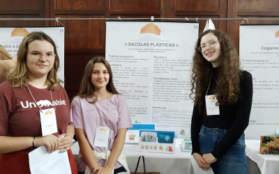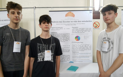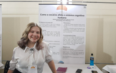 Pensando na pesquisa como um alerta aos amigos, o trio do 9º ano formado pelas alunas Gabriela Deimling, Clara Silva e Manoela Carajai, pesquisou sobre “Como a cocaína afeta o sistema cognitivo humano”. Elas pesquisaram sobre a fabricação da droga, os efeitos no cérebro e os motivos que costumam levar as pessoas ao uso da cocaína.