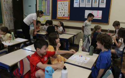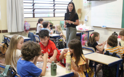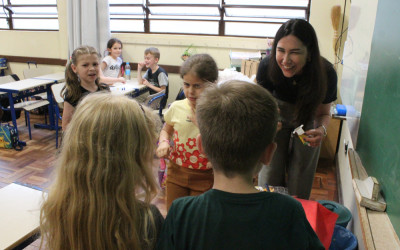 E, na aula de quinta-feira, 7, na turma da professora Béverle Presser, recebeu a mãe da colega Betina, Roberta Koch Burlacenko, para uma conversa.